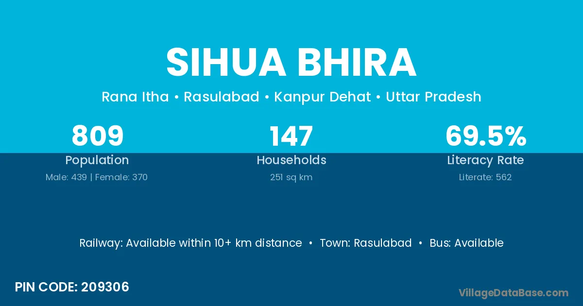 Rasulabad is the nearest town to Sihua Bhira village for major economic activities