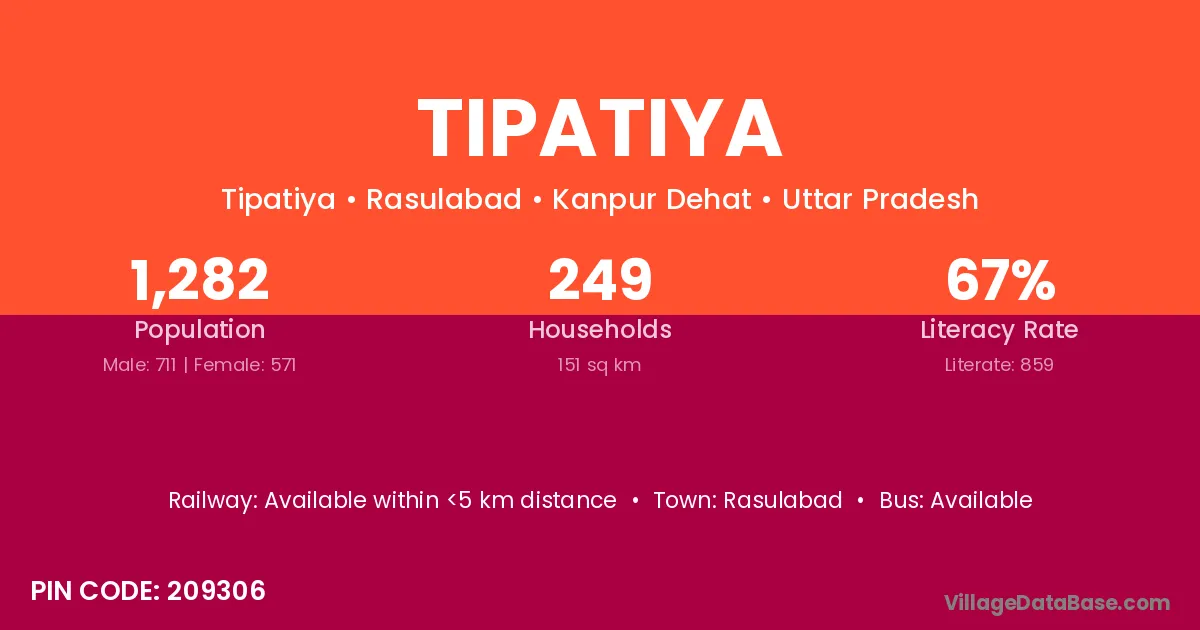 Rasulabad is the nearest town to Tipatiya village for major economic activities