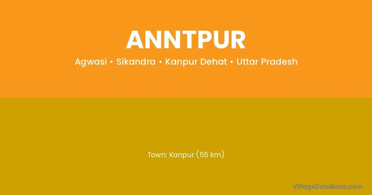 Kanpur (55 km) is the nearest town to Anntpur village for major economic activities and is located approximately 55 km away.
