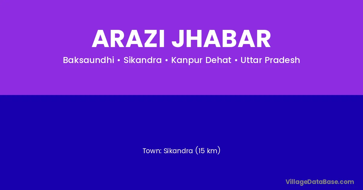 Sikandra (15 km) is the nearest town to Arazi Jhabar village for major economic activities and is located approximately 15 km away.