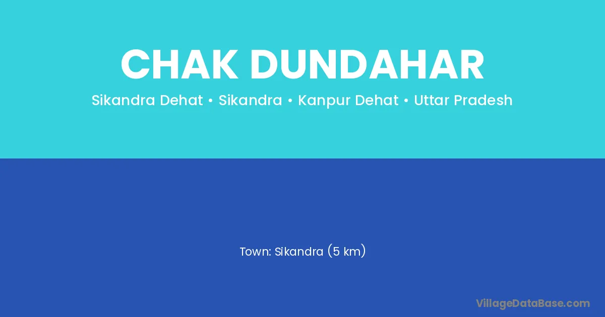 Sikandra (5 km) is the nearest town to Chak Dundahar village for major economic activities and is located approximately 5 km away.