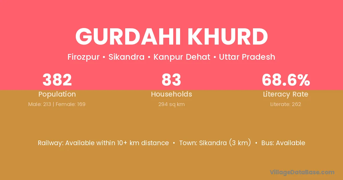 Sikandra (3 km) is the nearest town to Gurdahi Khurd village for major economic activities and is located approximately 3 km away.