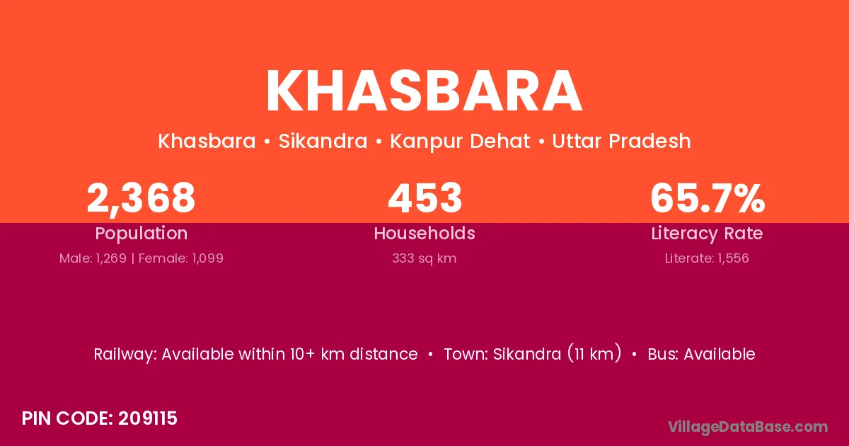 Sikandra (11 km) is the nearest town to Khasbara village for major economic activities and is located approximately 11 km away.