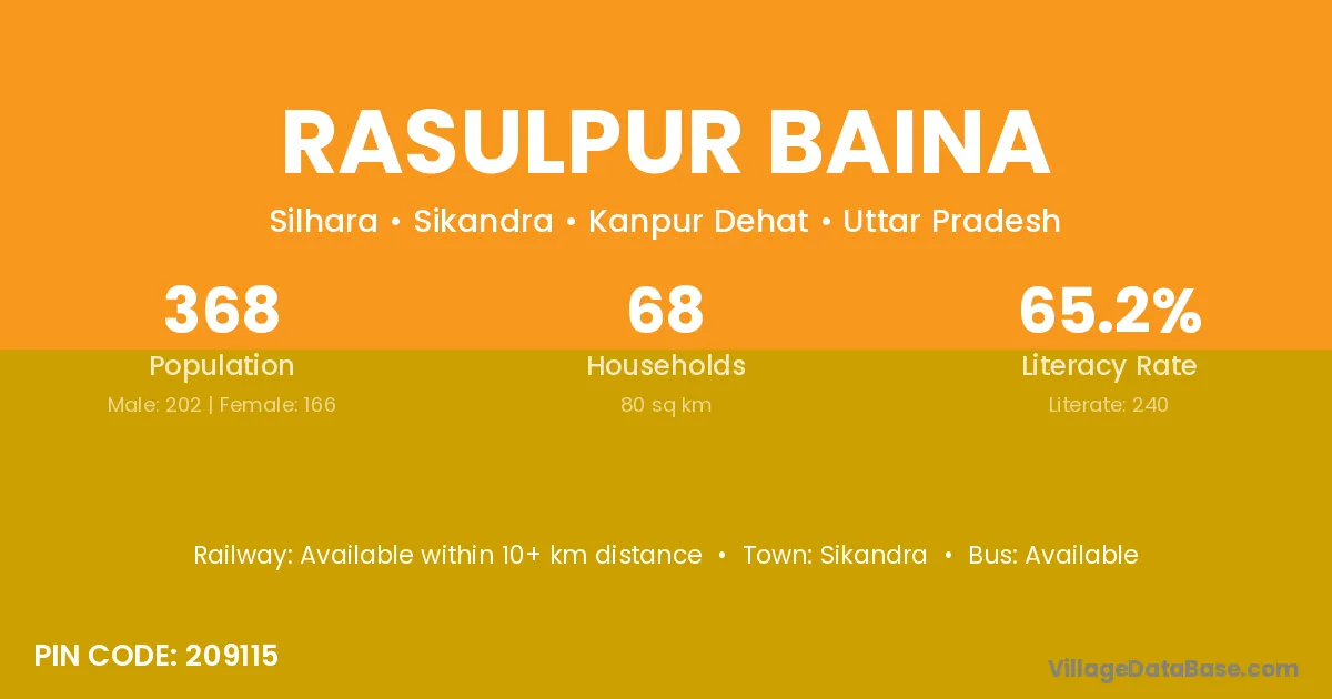 Sikandra is the nearest town to Rasulpur Baina village for major economic activities