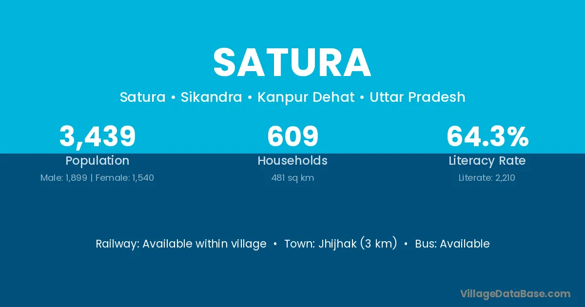Jhijhak (3 km) is the nearest town to Satura village for major economic activities and is located approximately 3 km away.