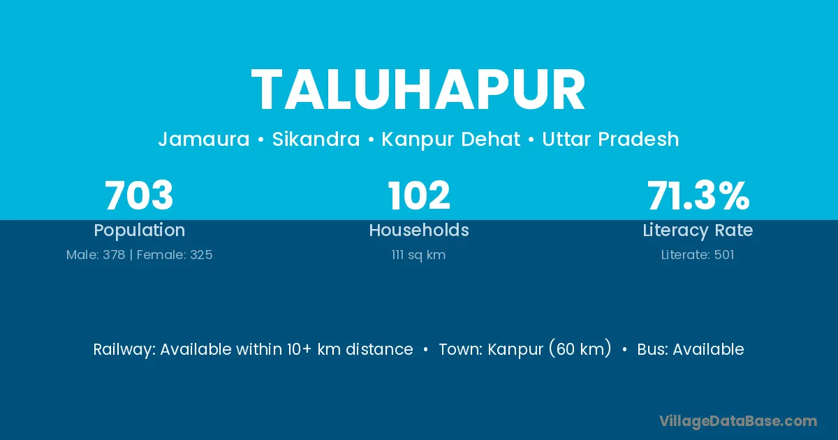 Kanpur (60 km) is the nearest town to Taluhapur village for major economic activities and is located approximately 60 km away.