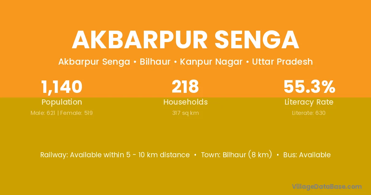 Bilhaur (8 km) is the nearest town to Akbarpur Senga village for major economic activities and is located approximately 8 km away.