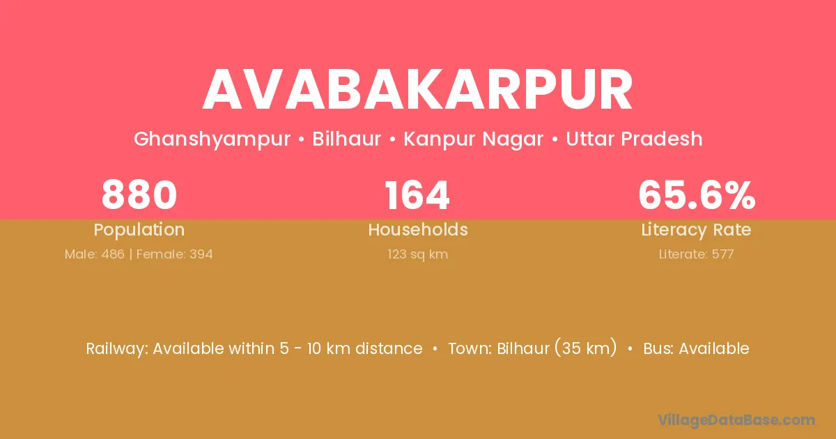 Bilhaur (35 km) is the nearest town to Avabakarpur village for major economic activities and is located approximately 35 km away.