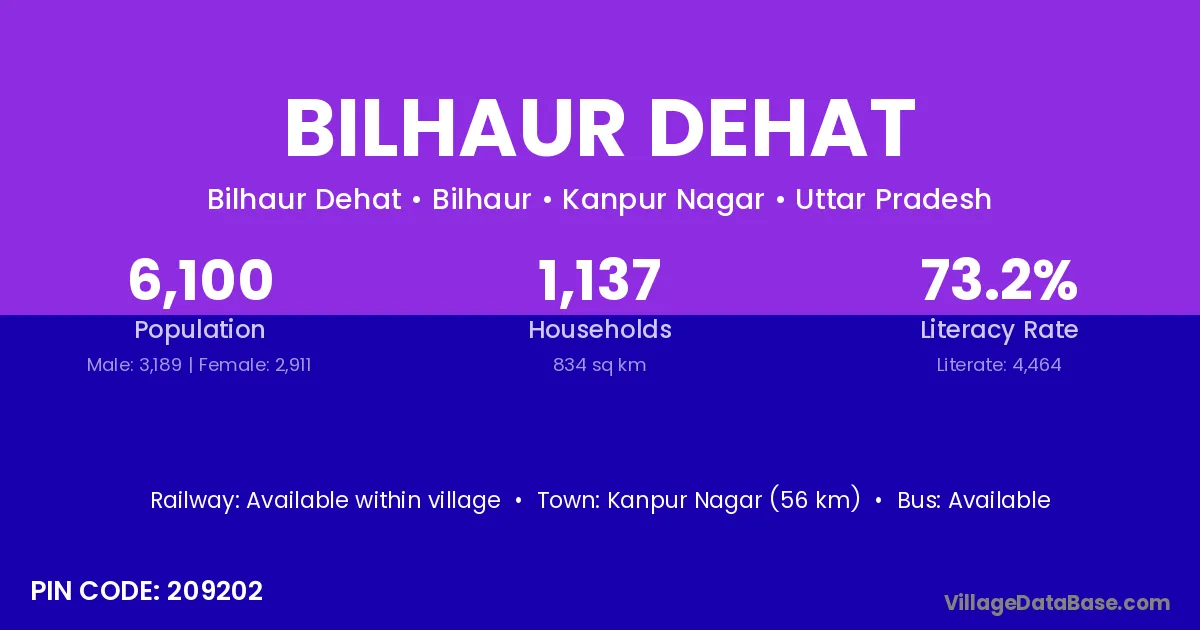 Bilhaur Dehat village has a total population of 6,100 people, of which 3,189 are males and 2,911 are females.