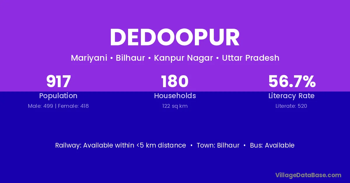 Bilhaur is the nearest town to Dedoopur village for major economic activities
