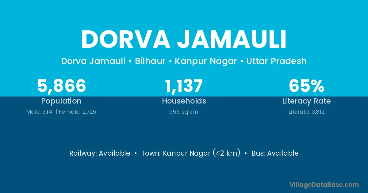 Kanpur Nagar (42 km) is the nearest town to Dorva Jamauli village for major economic activities and is located approximately 42 km away.