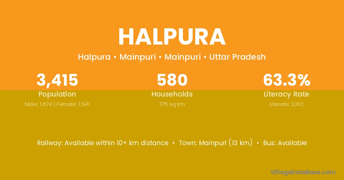 Bilhaur (14 km) is the nearest town to Halpura village for major economic activities and is located approximately 14 km away.