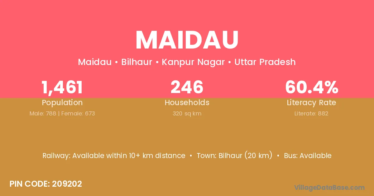 Bilhaur (20 km) is the nearest town to Maidau village for major economic activities and is located approximately 20 km away.