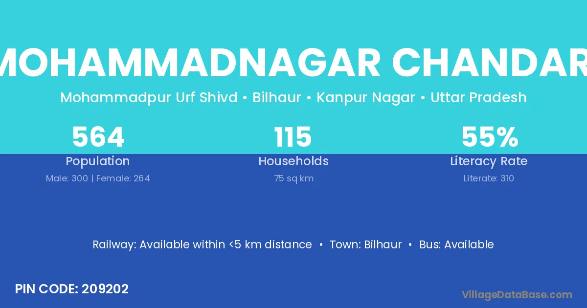 Mohammadnagar Chandari village has a total population of 564 people, of which 300 are males and 264 are females.