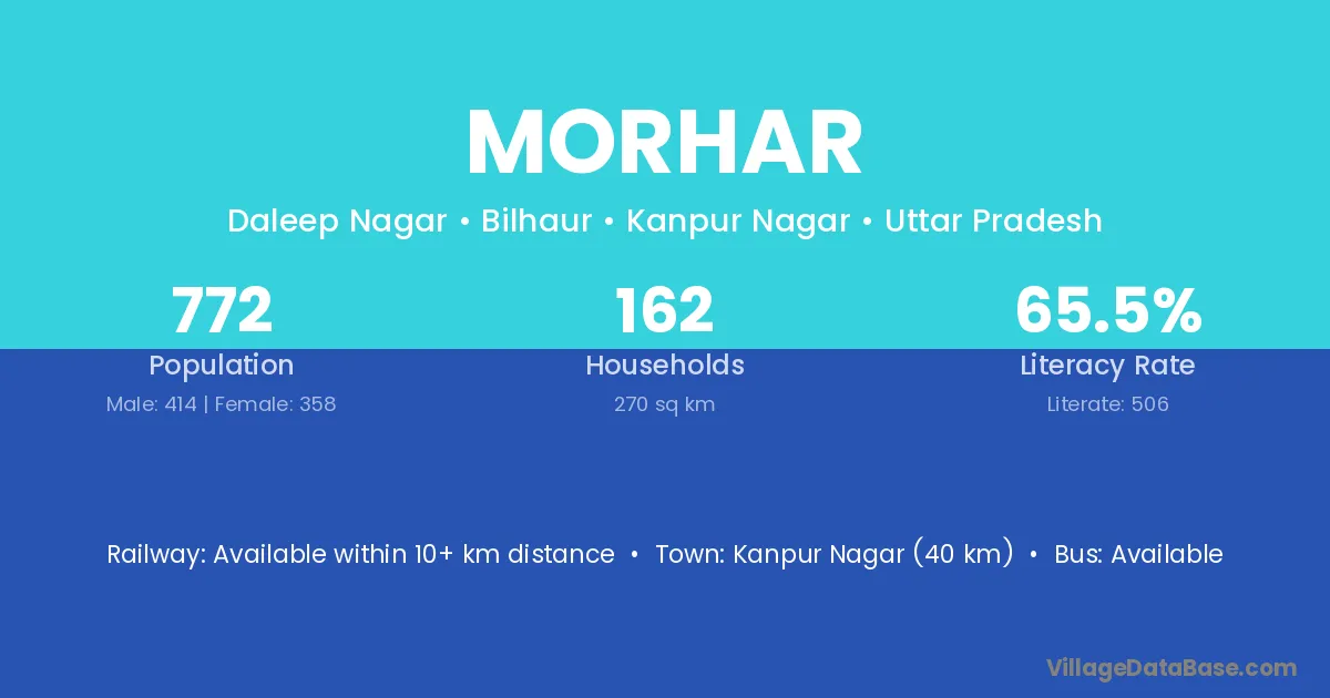 Kanpur Nagar (40 km) is the nearest town to Morhar village for major economic activities and is located approximately 40 km away.
