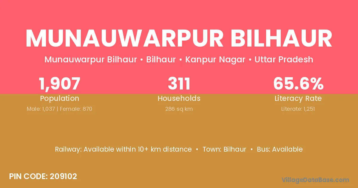 Munauwarpur Bilhaur village has a total population of 1,907 people, of which 1,037 are males and 870 are females.