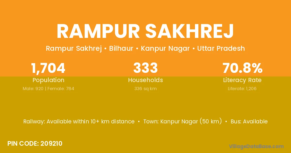 Kanpur Nagar (50 km) is the nearest town to Rampur Sakhrej village for major economic activities and is located approximately 50 km away.