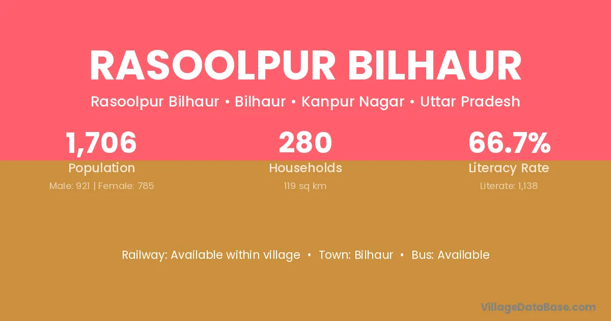 Rasoolpur Bilhaur village has a total population of 1,706 people, of which 921 are males and 785 are females.