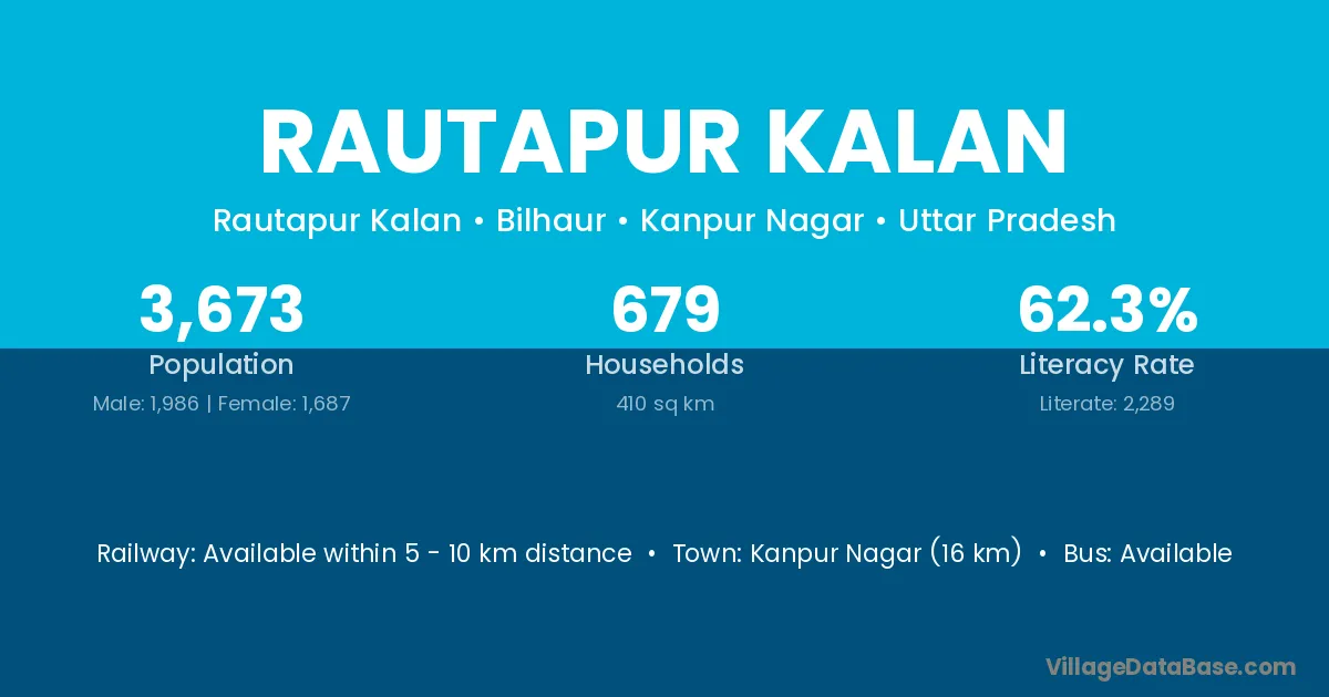 Kanpur Nagar (16 km) is the nearest town to Rautapur Kalan village for major economic activities and is located approximately 16 km away.