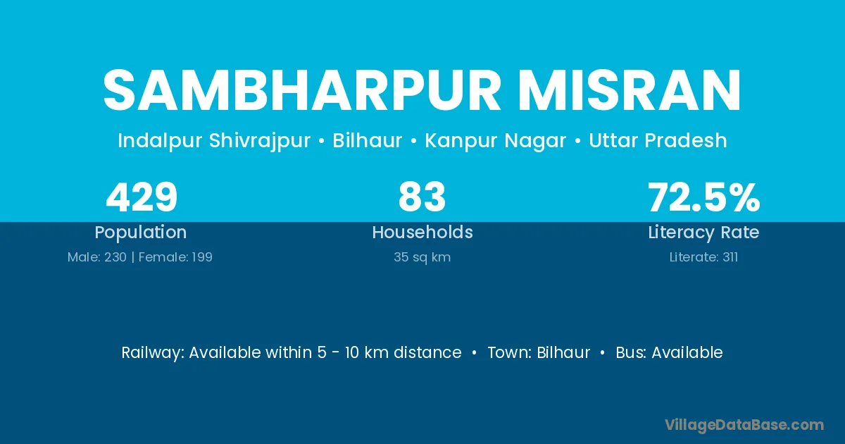 Sambharpur Misran village has a total population of 429 people, of which 230 are males and 199 are females.