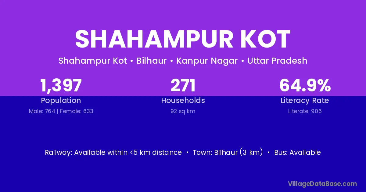Bilhaur (3 km) is the nearest town to Shahampur Kot village for major economic activities and is located approximately 3 km away.