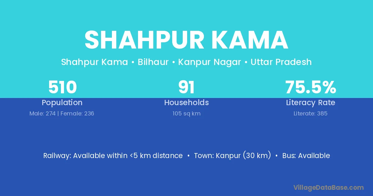 Kanpur (30 km) is the nearest town to Shahpur Kama village for major economic activities and is located approximately 30 km away.