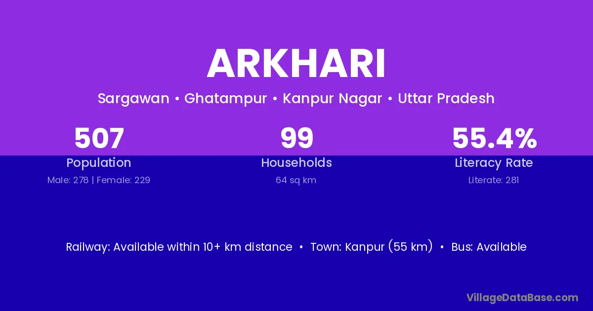 Kanpur (55 km) is the nearest town to Arkhari village for major economic activities and is located approximately 55 km away.