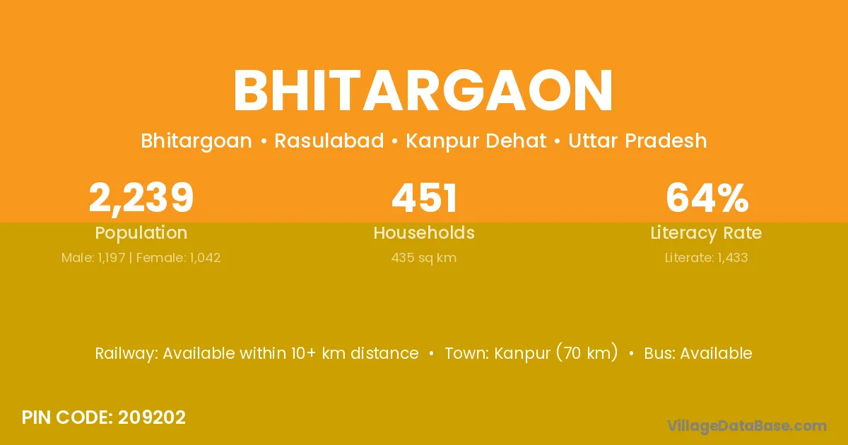 Kanpur (35 km) is the nearest town to Bhitargaon village for major economic activities and is located approximately 35 km away.