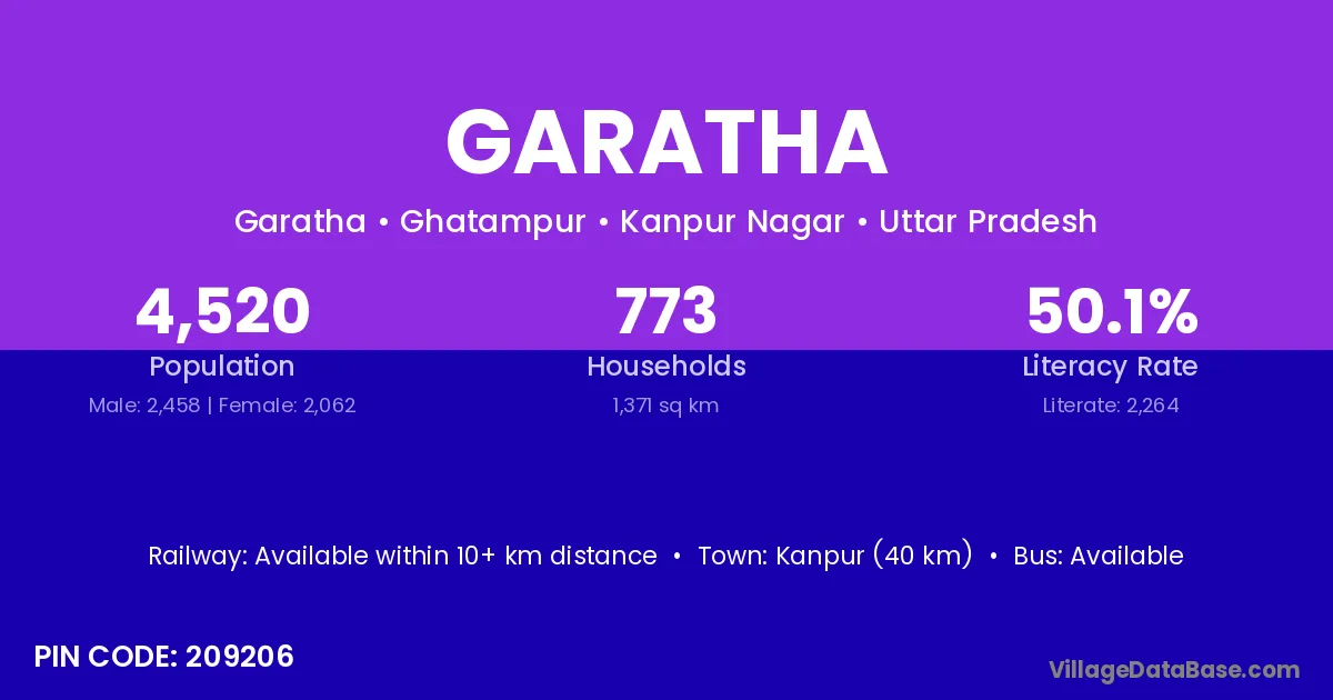 Kanpur (40 km) is the nearest town to Garatha village for major economic activities and is located approximately 40 km away.