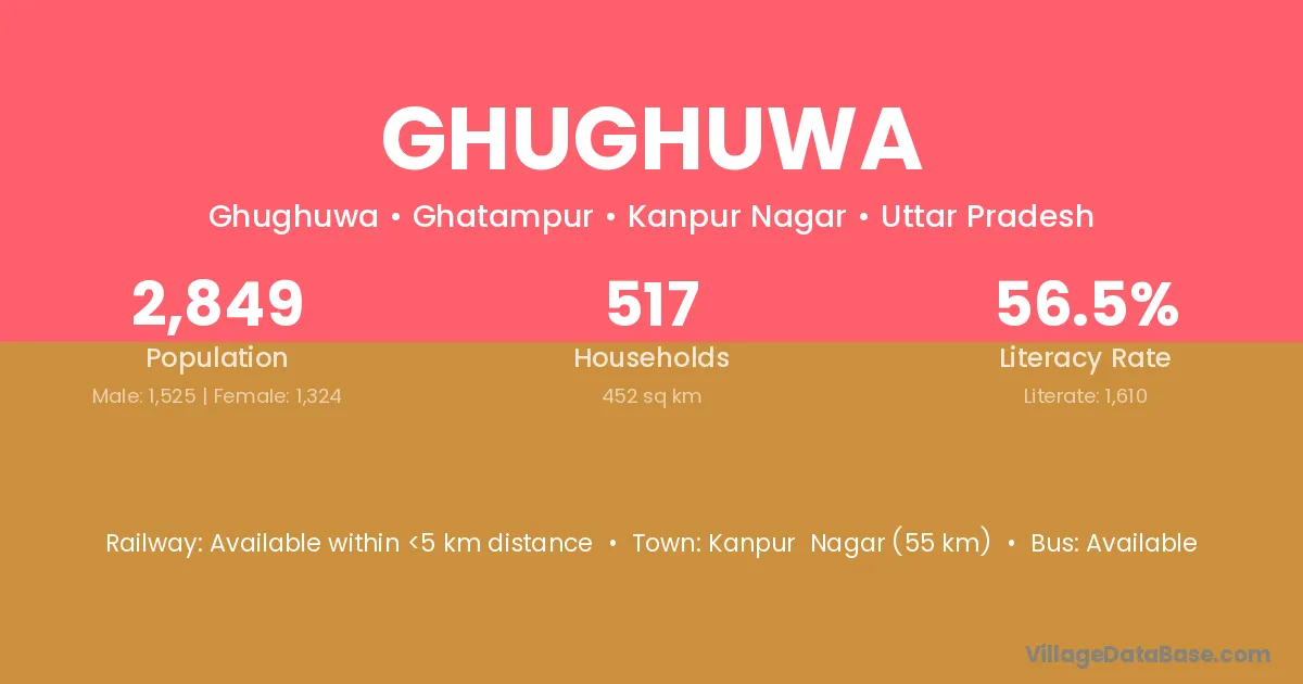 Kanpur Nagar (55 km) is the nearest town to Ghughuwa village for major economic activities and is located approximately 55 km away.