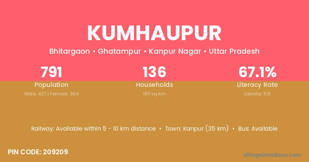 Kanpur (35 km) is the nearest town to Kumhaupur village for major economic activities and is located approximately 35 km away.