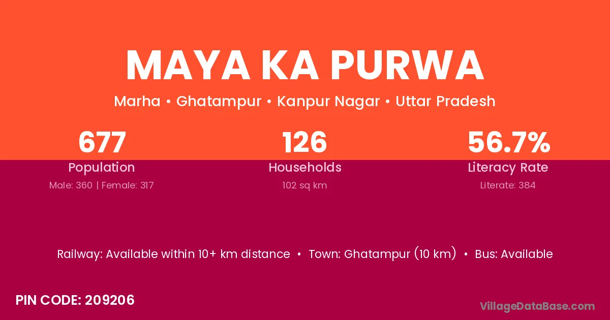 Maya Ka Purwa village has a total population of 677 people, of which 360 are males and 317 are females.