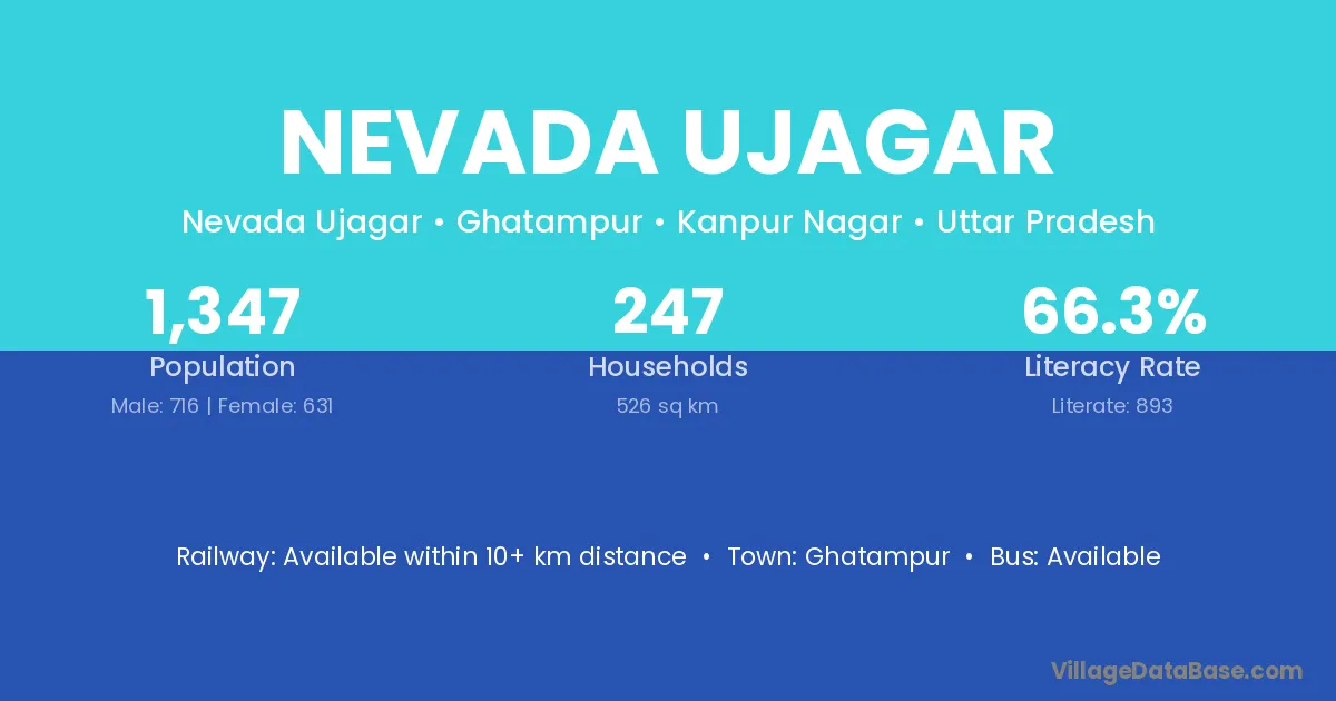 Nevada Ujagar village has a total population of 1,347 people, of which 716 are males and 631 are females.
