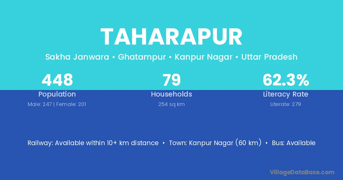 Kanpur Nagar (60 km) is the nearest town to Taharapur village for major economic activities and is located approximately 60 km away.