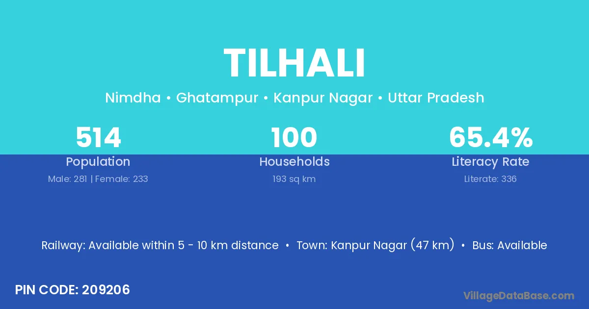 Kanpur Nagar (47 km) is the nearest town to Tilhali village for major economic activities and is located approximately 47 km away.