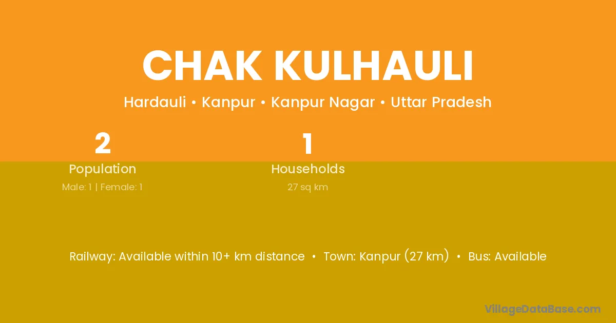 Chak Kulhauli village has a total population of 2 people, of which 1 are males and 1 are females.