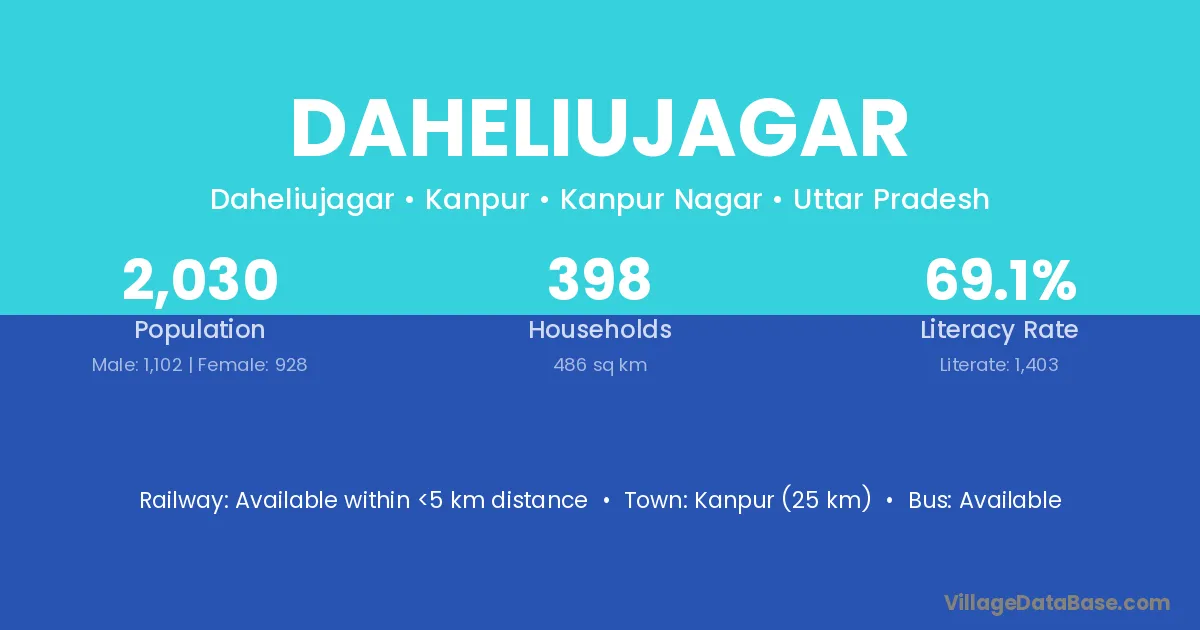 Kanpur (25 km) is the nearest town to Daheliujagar village for major economic activities and is located approximately 25 km away.