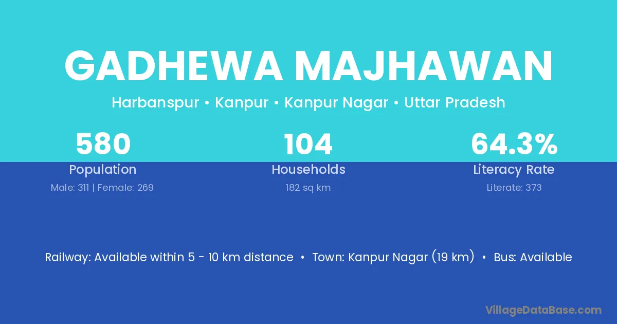 Kanpur Nagar (19 km) is the nearest town to Gadhewa Majhawan village for major economic activities and is located approximately 19 km away.
