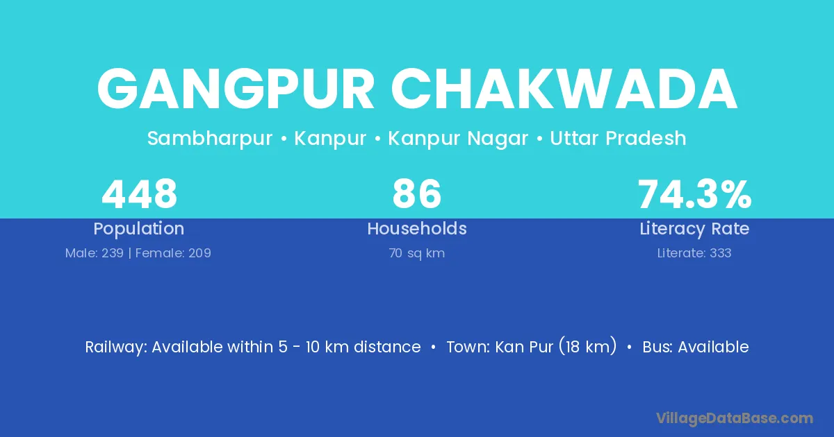Gangpur Chakwada village has a total population of 448 people, of which 239 are males and 209 are females.