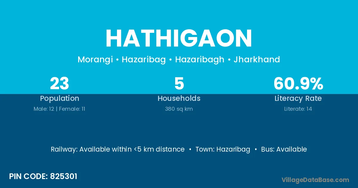 The literacy rate of Hathigaon village is 63.12%. Male literacy stands at 70.58% and female literacy at 54.97%.