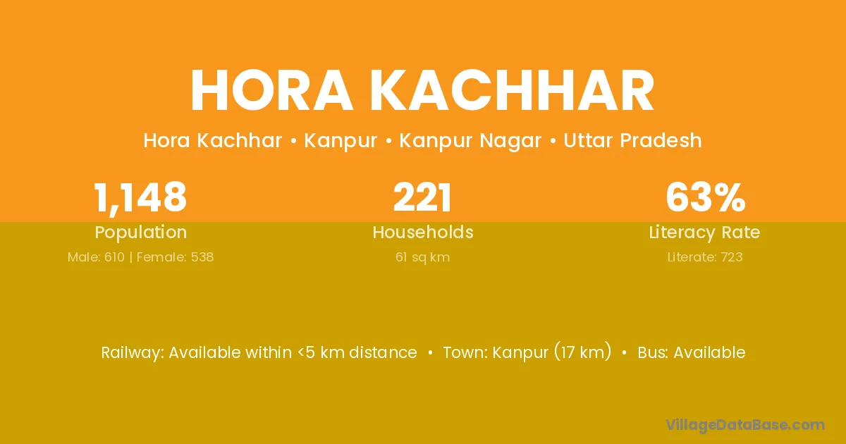 Kanpur (17 km) is the nearest town to Hora Kachhar village for major economic activities and is located approximately 17 km away.