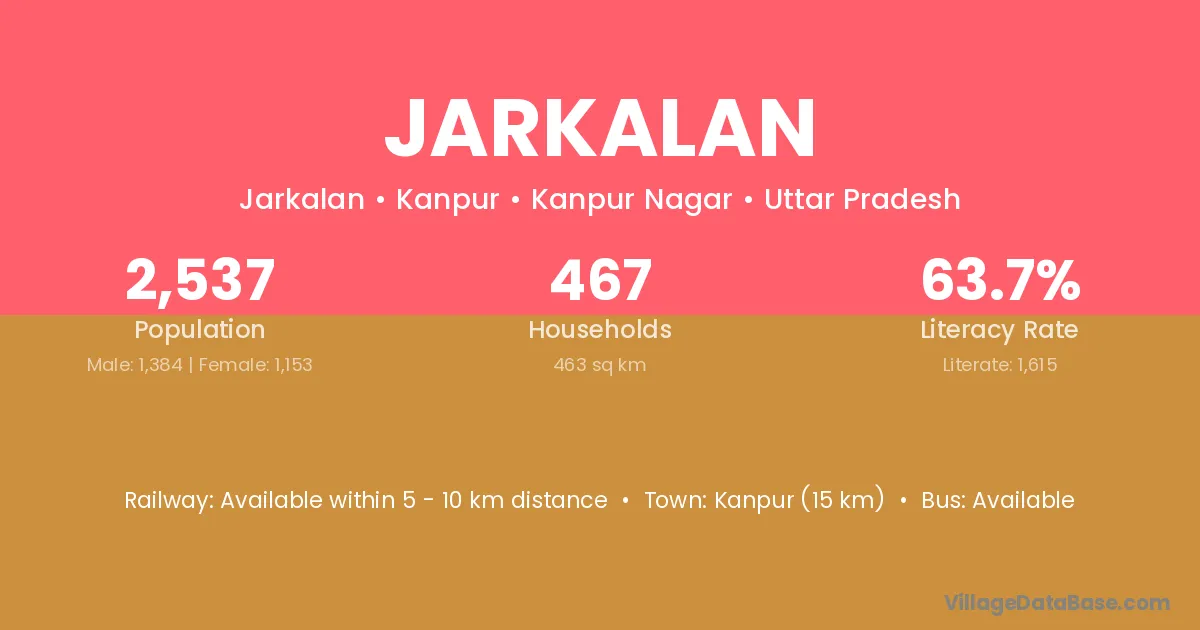 Kanpur (15 km) is the nearest town to Jarkalan village for major economic activities and is located approximately 15 km away.