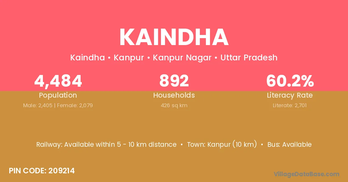 Kanpur (10 km) is the nearest town to Kaindha village for major economic activities and is located approximately 10 km away.