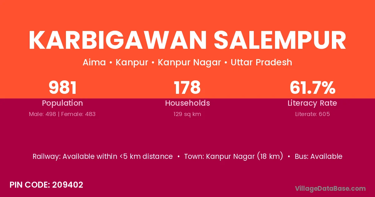 Karbigawan Salempur village has a total population of 981 people, of which 498 are males and 483 are females.
