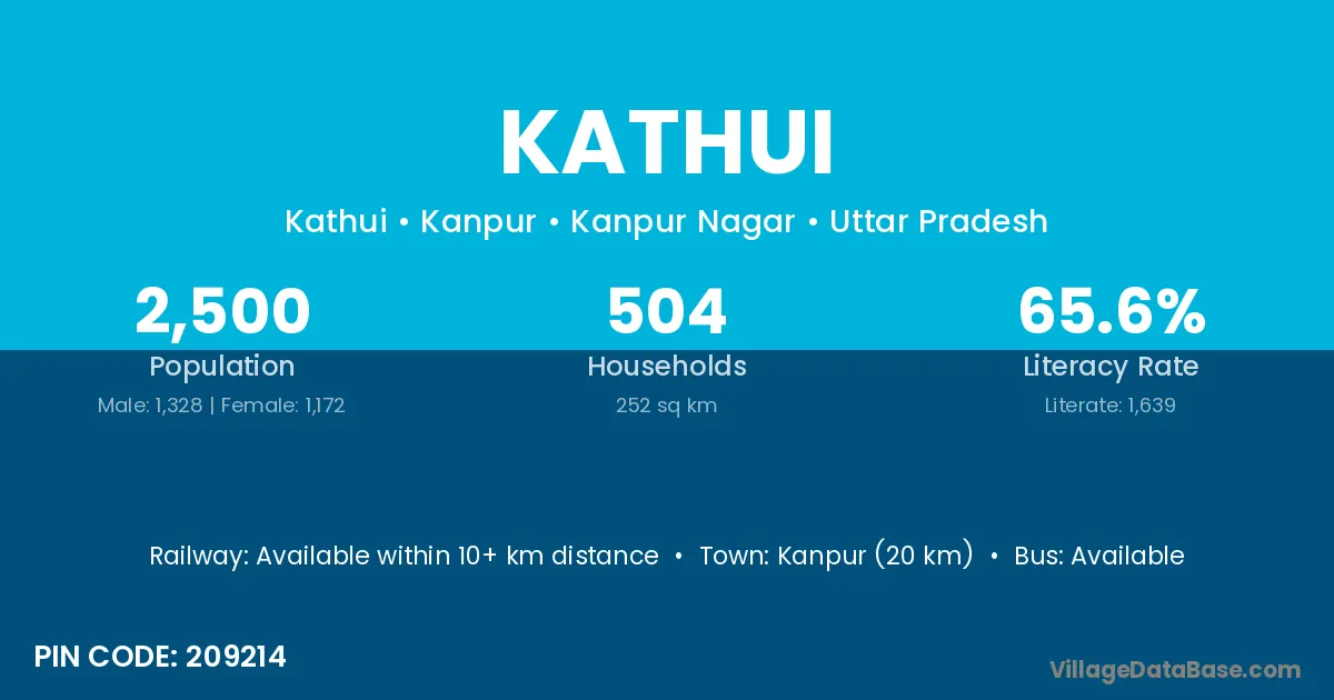 Kanpur (20 km) is the nearest town to Kathui village for major economic activities and is located approximately 20 km away.
