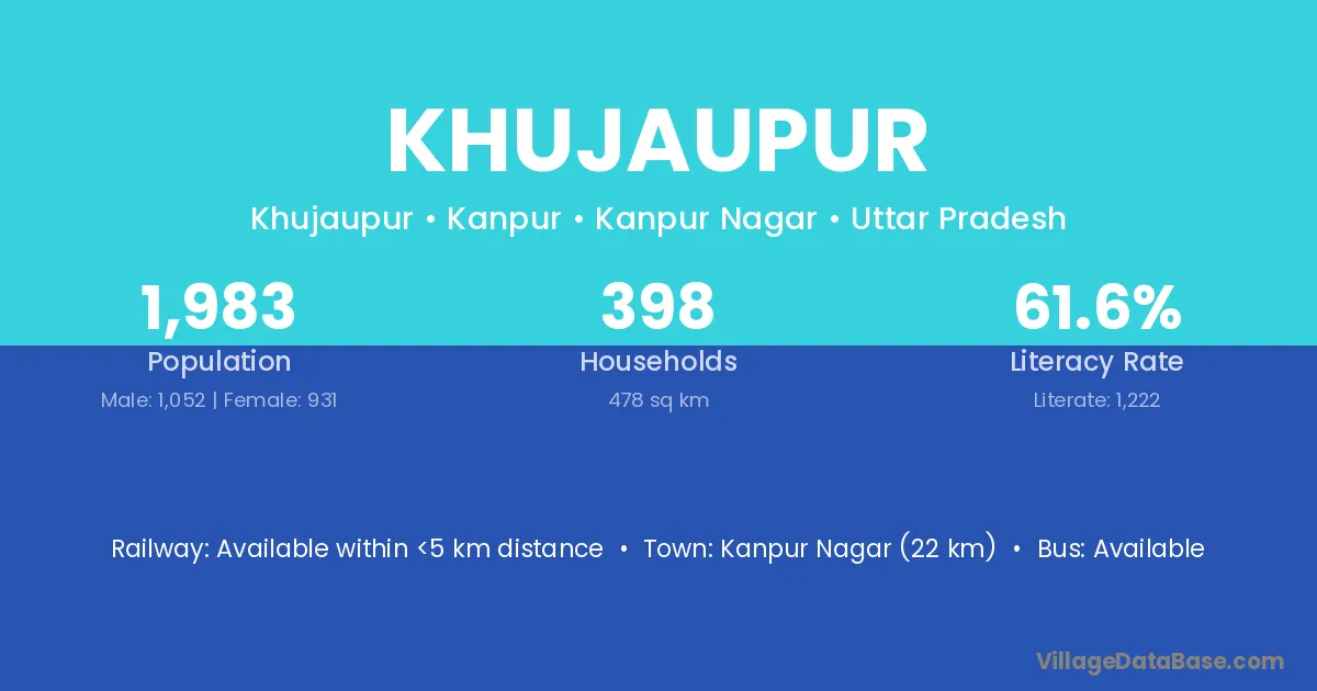Kanpur Nagar (22 km) is the nearest town to Khujaupur village for major economic activities and is located approximately 22 km away.