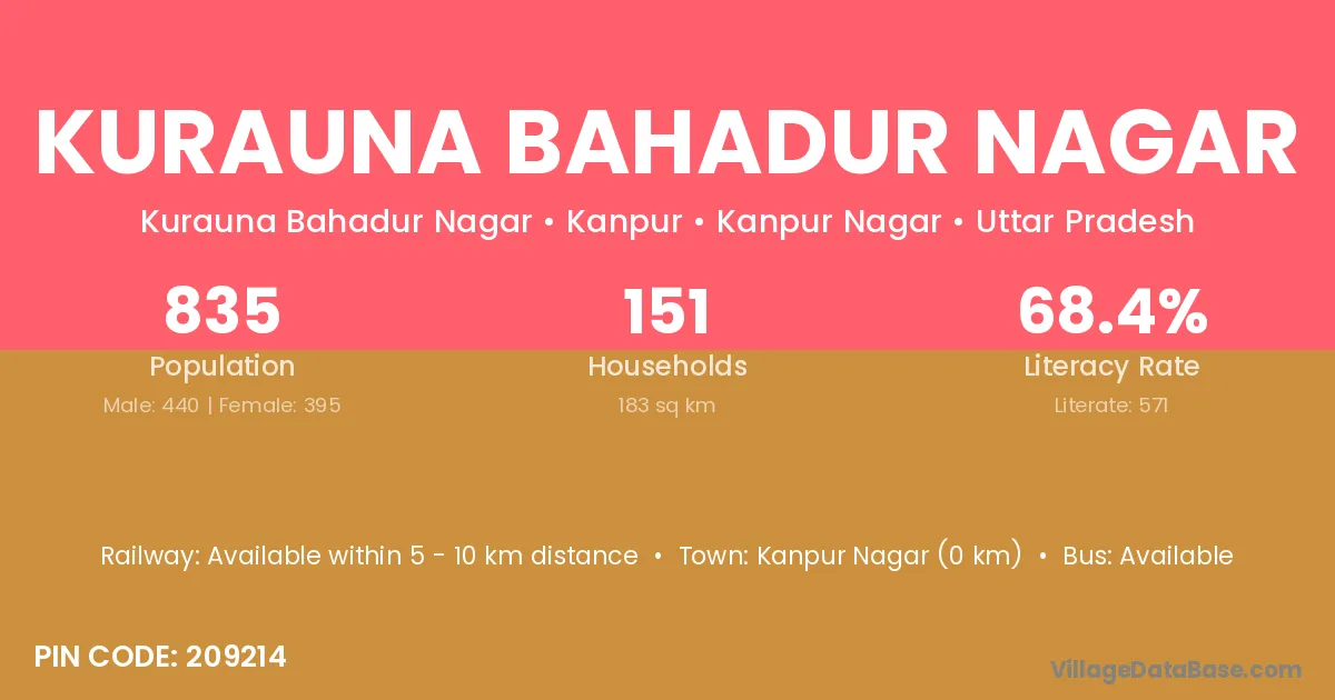 Kurauna Bahadur Nagar village has a total population of 835 people, of which 440 are males and 395 are females.