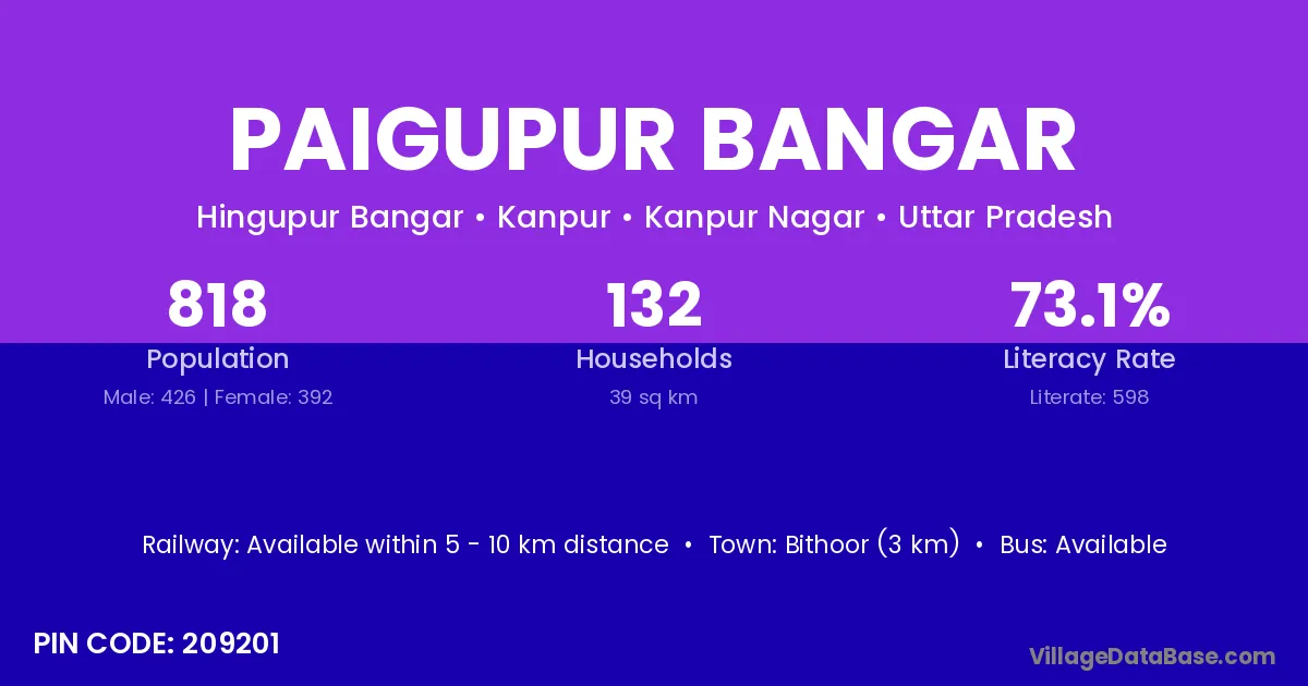 Bithoor (3 km) is the nearest town to Paigupur Bangar village for major economic activities and is located approximately 3 km away.