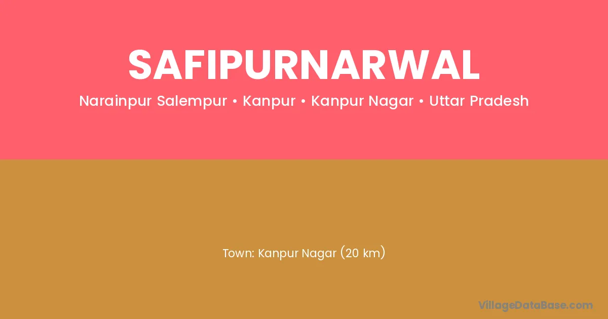 Kanpur Nagar (20 km) is the nearest town to Safipurnarwal village for major economic activities and is located approximately 20 km away.