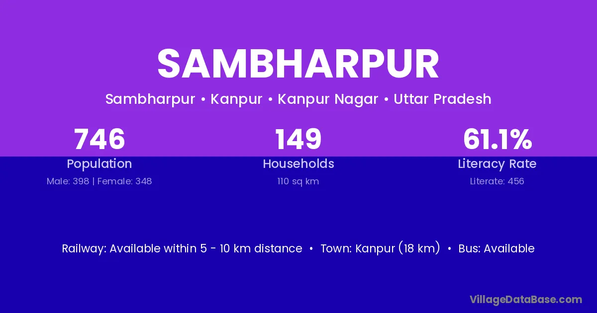 Kanpur (18 km) is the nearest town to Sambharpur village for major economic activities and is located approximately 18 km away.